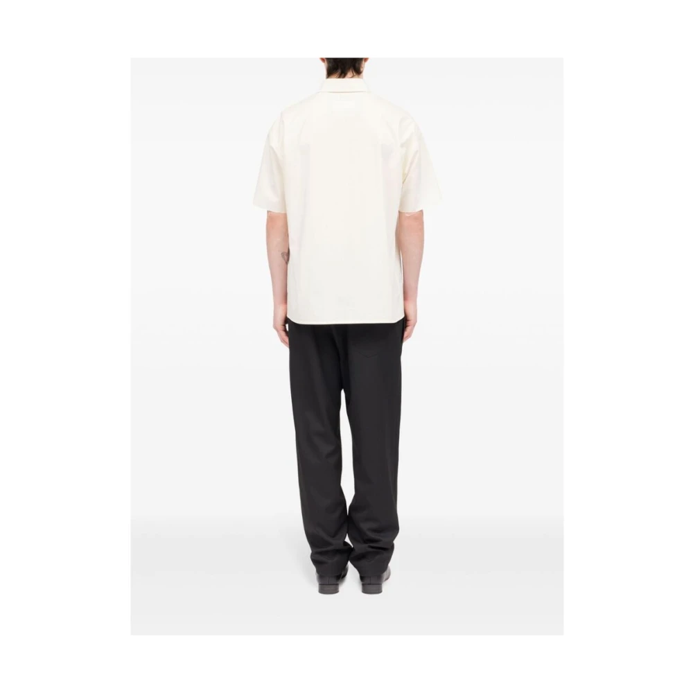 Upgrade je casual look met deze MM6 Maison Margiela beige en zwarte katoenen overhemd met korte mouwen, voorzien van een grote tekstprint op de voorkant. Ontworpen met een rechte kraag, knoopsluiting aan de voorkant, drop shoulder, korte mouwen en een rechte zoom.