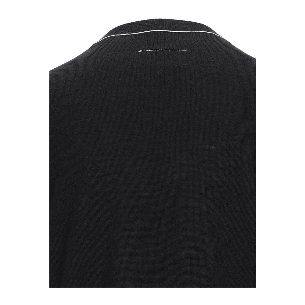 Upgrade je stijl met deze MM6 Maison Margiela zwarte trui van een mix van zuivere wol met contrastdetails, ronde hals, logolabel op de borst, geborduurd logo op de achterkant, geribbelde afwerkingen en rechte zoom.
