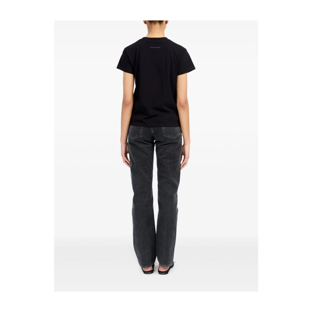 Ontdek het MM6 Maison Margiela T-shirt, een stijlvol kledingstuk gemaakt van zwarte katoenen jersey, met een unieke numerieke logo-print en franjes op de borst. Dit T-shirt is perfect om een vleugje avant-garde mode toe te voegen aan je dagelijkse garderobe. Belangrijkste kenmerken: Zwart | Katoenen jersey | Ronde halslijn | Korte mouwen | Rechte zoom | Numerieke logo-print | Franjes op de borst | Maison`s kenmerkende witte stiksels op de rug | Afmetingen en pasvorm: Regular fit | Valt op maat | Samenstelling en onderhoud: 100% katoen | Machinewas koud, drogen in de droger op lage temperatuur