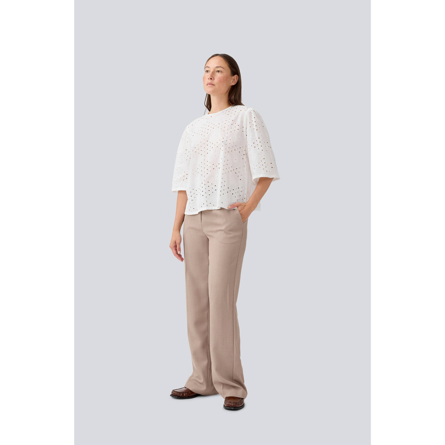 Deze Modstrm top is gemaakt van katoen en heeft een losse pasvorm. Met driekwart mouwen, broderie details en een ronde hals is deze top semi-transparant. De knoopsluiting maakt het geheel af. Perfect voor dames die van stijl houden