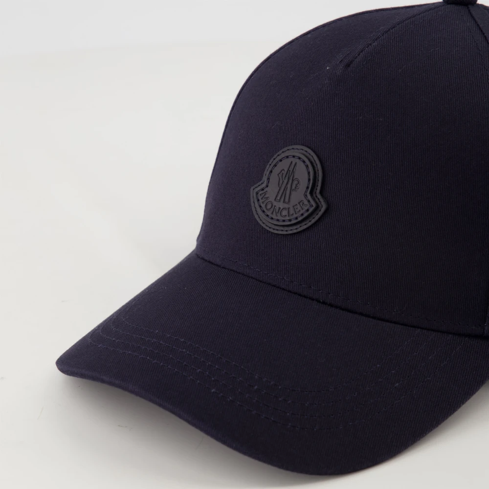 Blijf stijlvol met deze navyblauwe leren logocap van het merk Moncler, ontworpen voor mannen. Onderdeel van de Lente-Zomer 2025 collectie, is dit stuk gemaakt van katoenen gabardine
