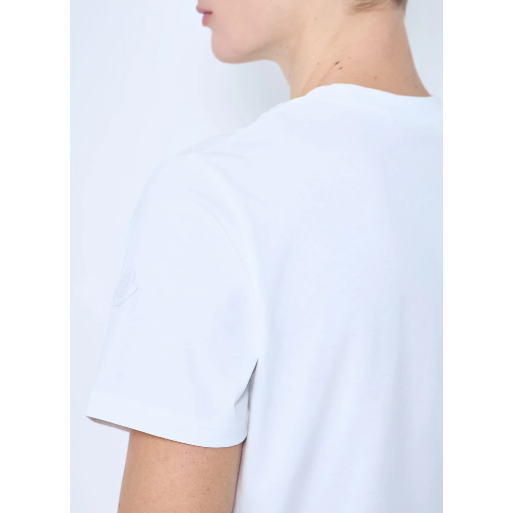 Moncler wit logo patch crew neck t-shirt voor mannen met korte mouwen