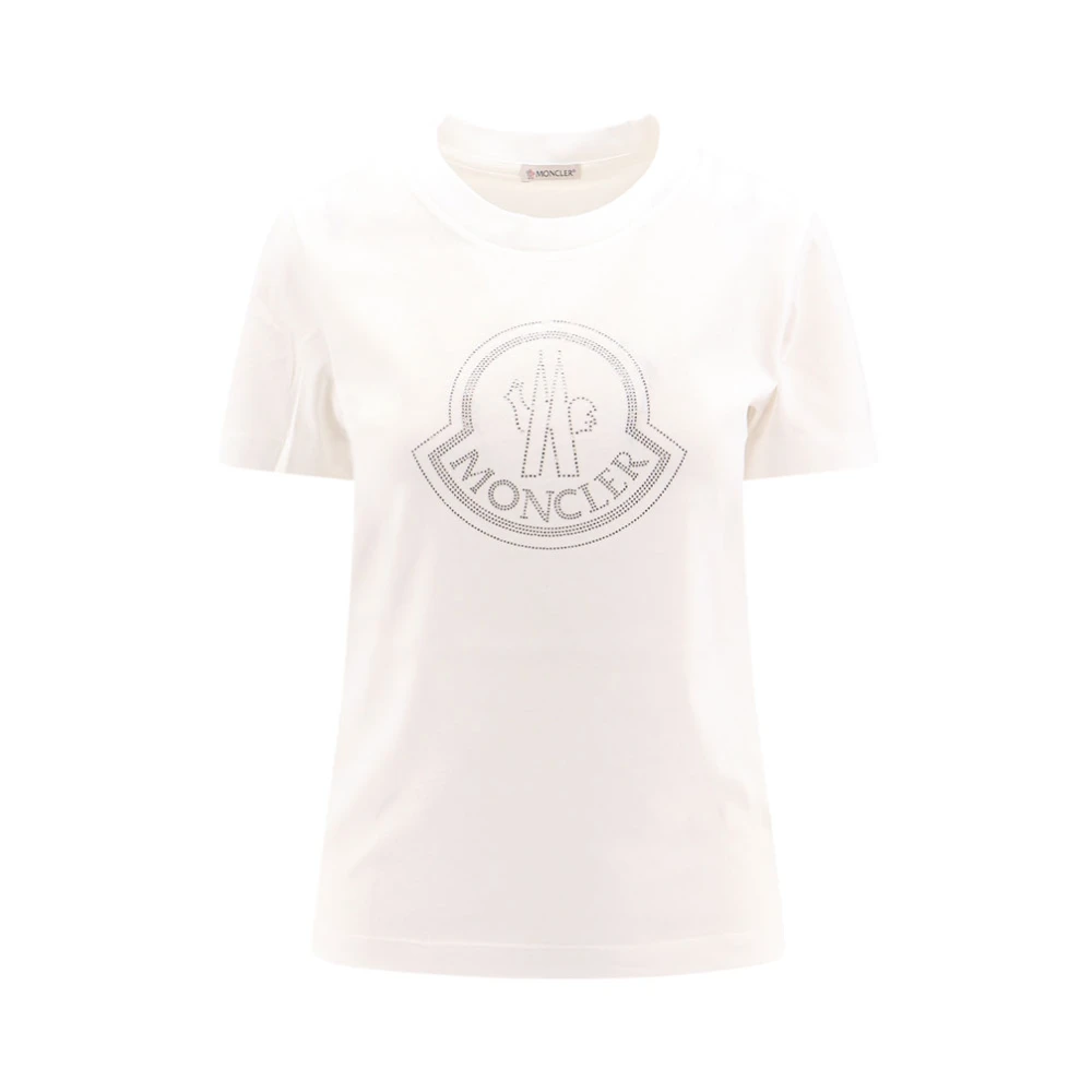 Upgrade je casual look met deze Moncler katoenen t-shirt met een chique Moncler print en strass profiel. Voorzien van een ronde hals, korte mouwen en een ton-sur-ton logo patch op de linker mouw. Gemaakt van 100% katoen voor ultiem comfort en stijl.