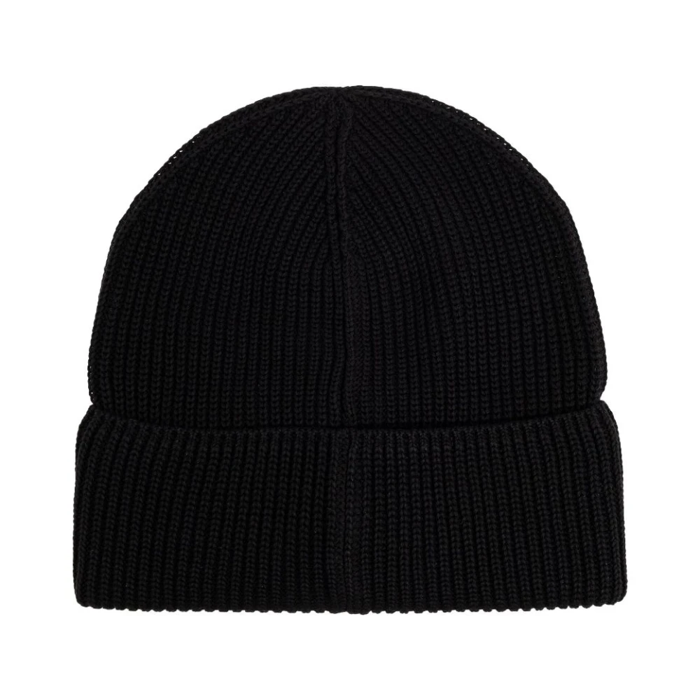 Blijf stijlvol en warm met deze Moncler muts voor heren met een zwarte logopatch aan de voorkant en een omgeslagen rand