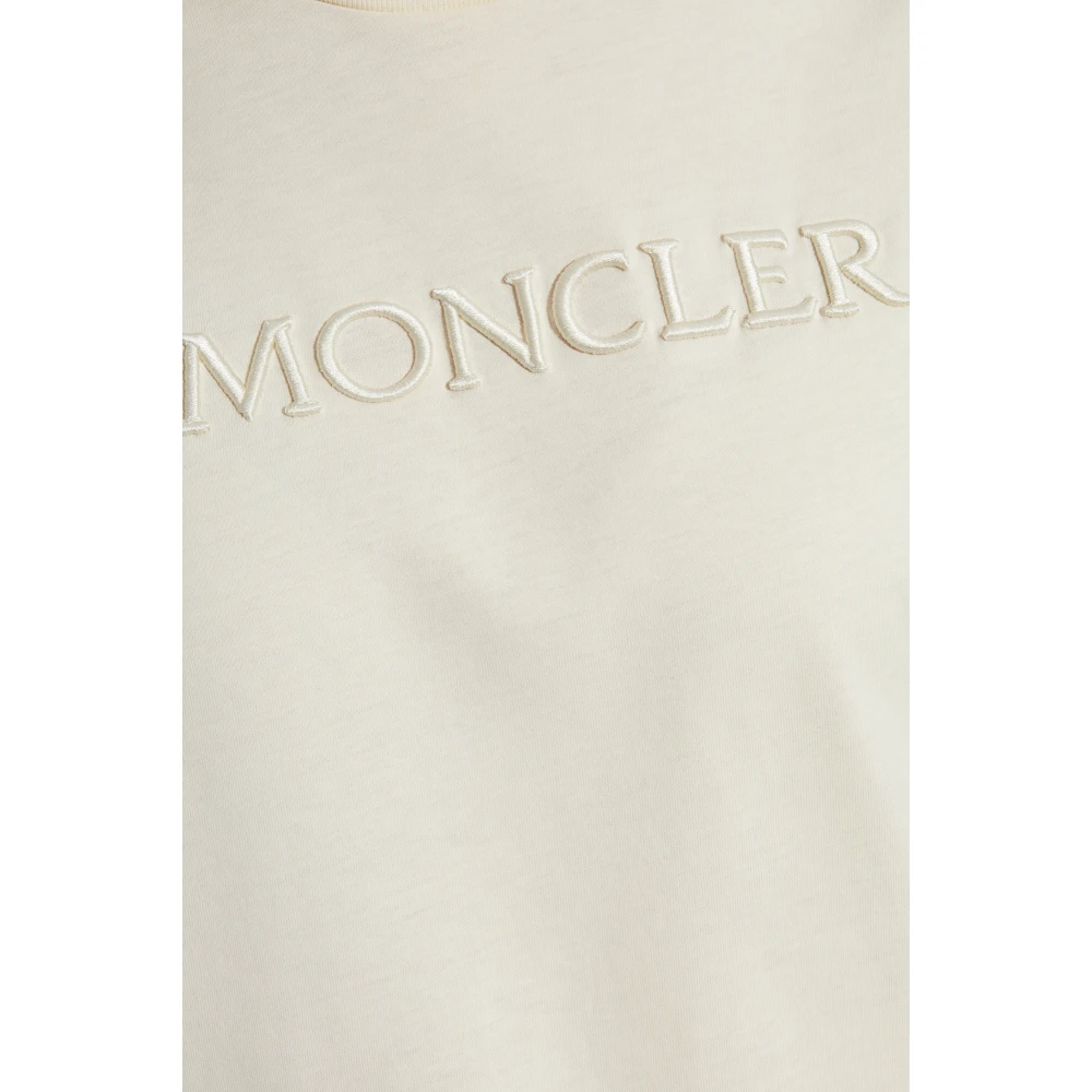 Maak kennis met het Cream T-Shirt MET Logo van het gerenommeerde Italiaanse merk Moncler. Dit uitzonderlijke kledingstuk weet te boeien met zijn minimalistische ontwerp, benadrukt door een subtiele, relif