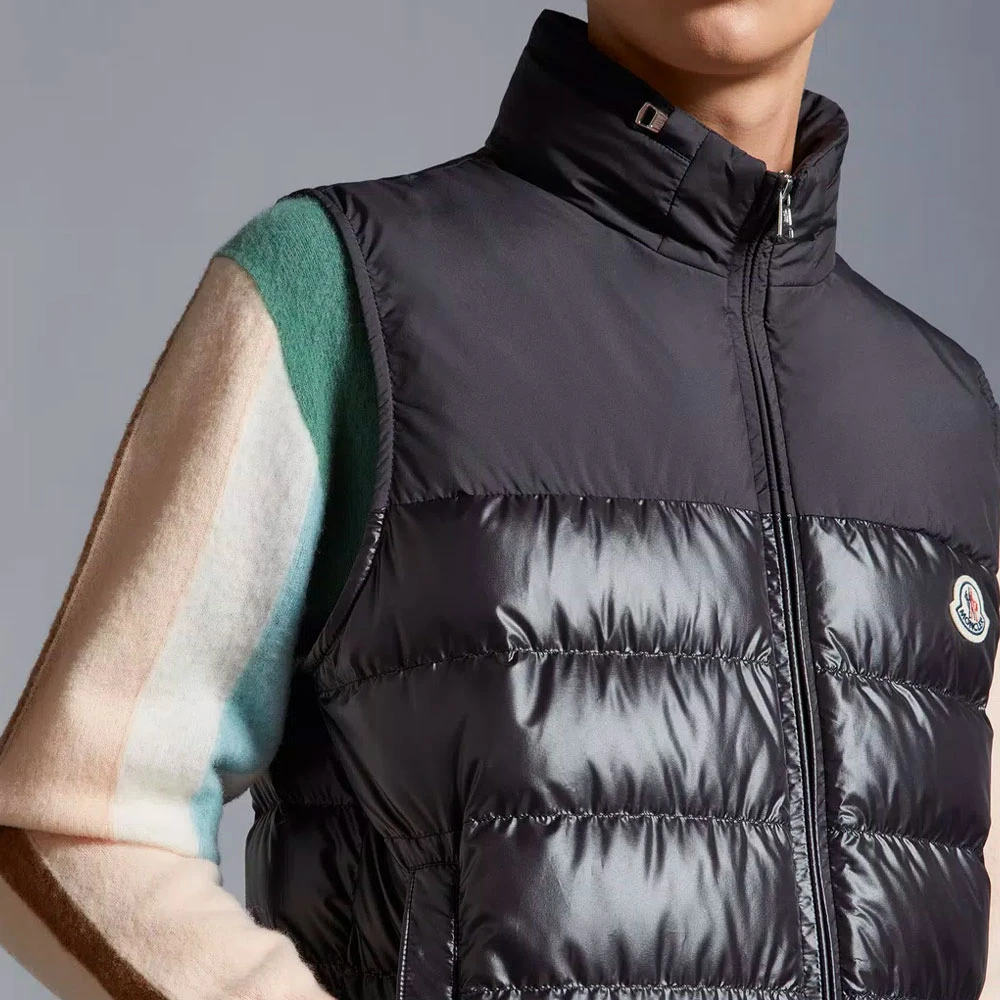 Blijf warm en stijlvol met deze Moncler Cerces vest in glanzend en mat zwart. Voorzien van een verborgen capuchon in nylon, ritssluiting en buiten- en binnenzakken met ritsen. Gemaakt van 100% polyester met 90% dons en 10% veren. Alleen met de hand wassen.