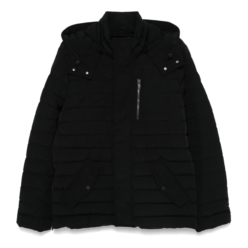 Blijf warm en stijlvol met de Moose Knuckles Cloud Bomber Neoshear donsjas voor heren, met een buitenkant en voering van 100% polyester, gevuld met 90% eendendons en 10% waterhoenderveren, en afgewerkt met schapenvacht.