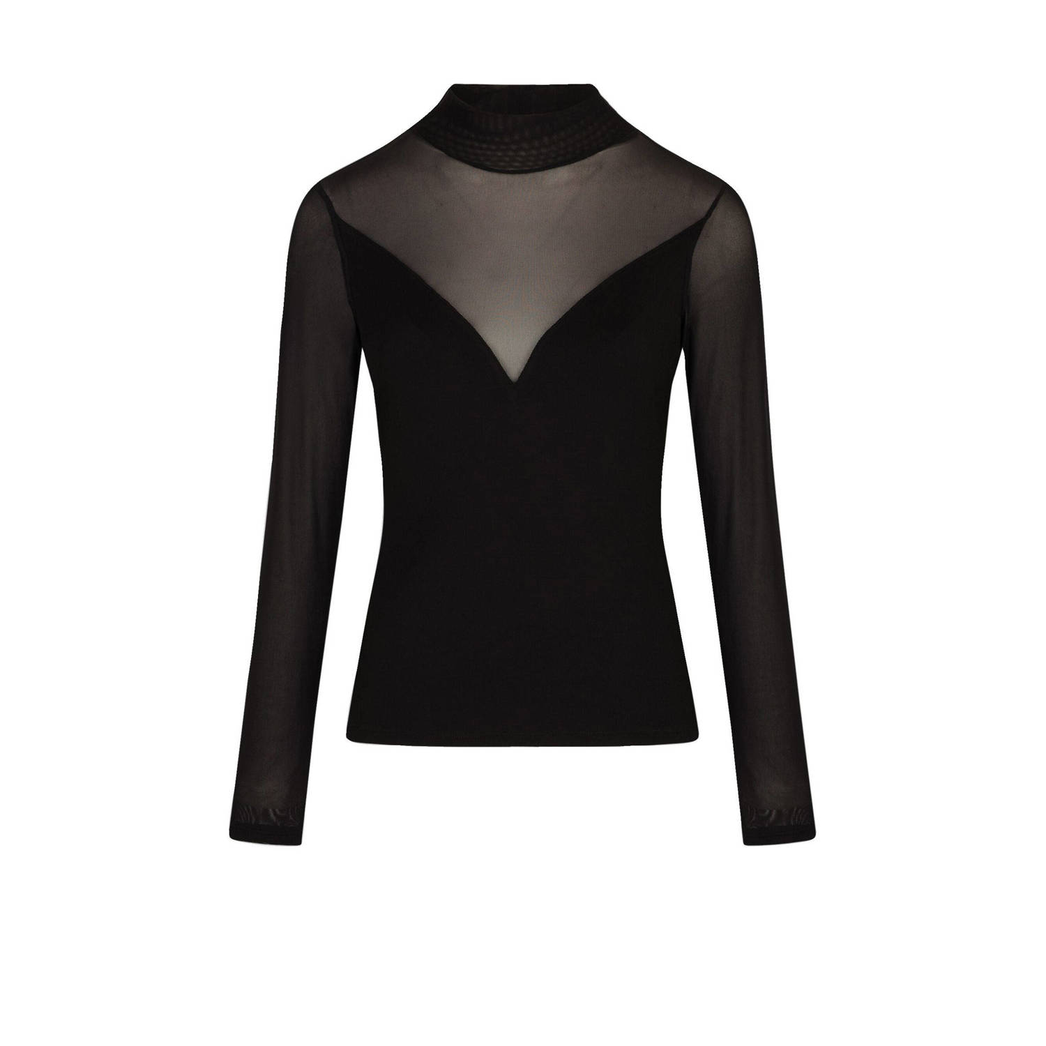 Deze top voor dames van Morgan de Toi is gemaakt van een polyamidemix. Het model heeft een opstaande kraag en lange mouwen.details van deze top:semi-transparant
