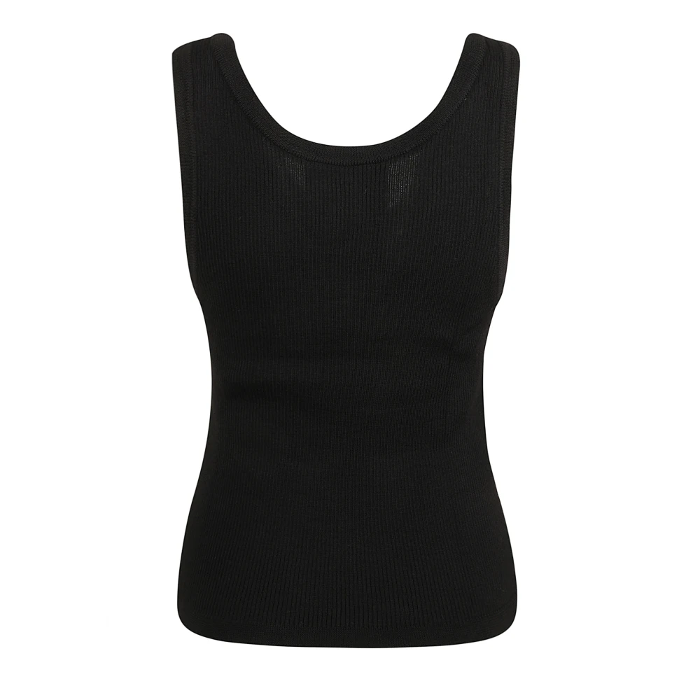 Upgrade je garderobe met deze stijlvolle zwarte Mouwloze top van Moschino voor vrouwen, gemaakt van 100% wol voor een luxueus gevoel.