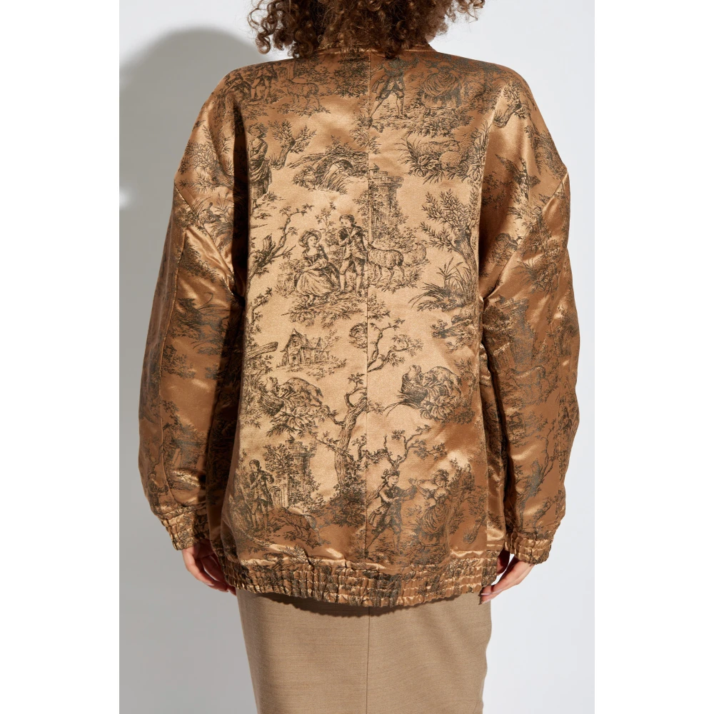 Het 'Fyffe' jack van Munthe belichaamt de essentie van chic en verfijning. De bomberstijl met een losse pasvorm en elastische manchetten zorgt voor comfort terwijl het een nonchalante stijl benadrukt. Het toile de jouy-patroon dat natuurtaferelen en figuren afbeeldt, schittert met zijn fijnheid en subtiliteit. Gemaakt van glanzende stof straalt het jack elegantie uit, en de dominante bruine kleur benadrukt zijn luxueuze karakter. Subtiele stiksels en de opstaande kraag dragen bij aan zijn verfijnde uitstraling, terwijl de verborgen rits en drukknopen zorgen voor praktisch gebruiksgemak. Met zichtbare zijzakken maakt het jack niet alleen indruk met zijn uiterlijk, maar dient het ook een functionele rol in dagelijks gebruik. Waarom ZOU U DIT Product Kopen? * Een mix van elegantie en casual stijl, perfect voor koelere dagen. * Uniek patroon en nauwkeurige afwerking door Munthe. * Materialen van hoge kwaliteit en productie. * Praktische ritsen en drukknopen. * Een veelzijdige toevoeging aan elke garderobe. Model's Metingen Hoogte: 176 cm Buste: 85 cm Taille: 60 cm Heupen: 89 cm Model draagt maat: 36