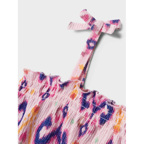 Laat jouw kleine fashionista stralen in deze schattige singlet van NAME IT KIDS! Gemaakt van een comfortabele polyestermix met een leuke all-over print. De singlet heeft een trendy vierkante hals en delicate spaghettibandjes. De leuke ruches maken de look helemaal af! Stijlnaam: NKFHABANE.
