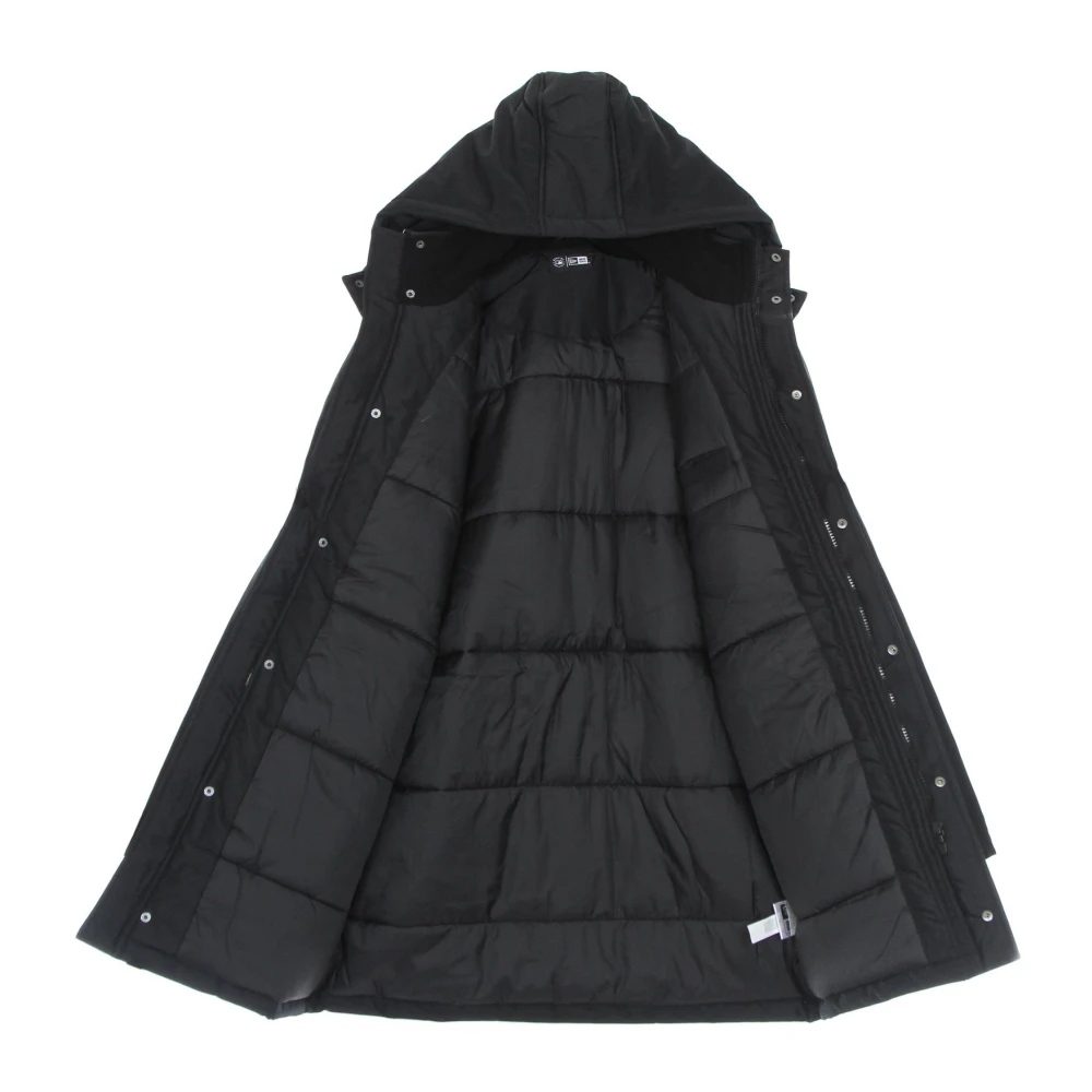 Blijf warm en stijlvol met deze New Era Half-Size Padded Jacket. Dit parka model heeft een verstelbare taille met elastisch koord, verstelbare capuchon, dubbele rits- en poussoirs sluiting, twee voorzakken met klep en poussoirs, en een interne zak. De regular fit jas toont het iconische New York Yankees logo gedrukt op de linkerzijde. Gemaakt van 100% polyester stof.