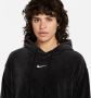 Sportswear Women's Velour Cropped Pullover Hoodie van NIKE. Kleur: black/sail. Beschikbare maten: XS