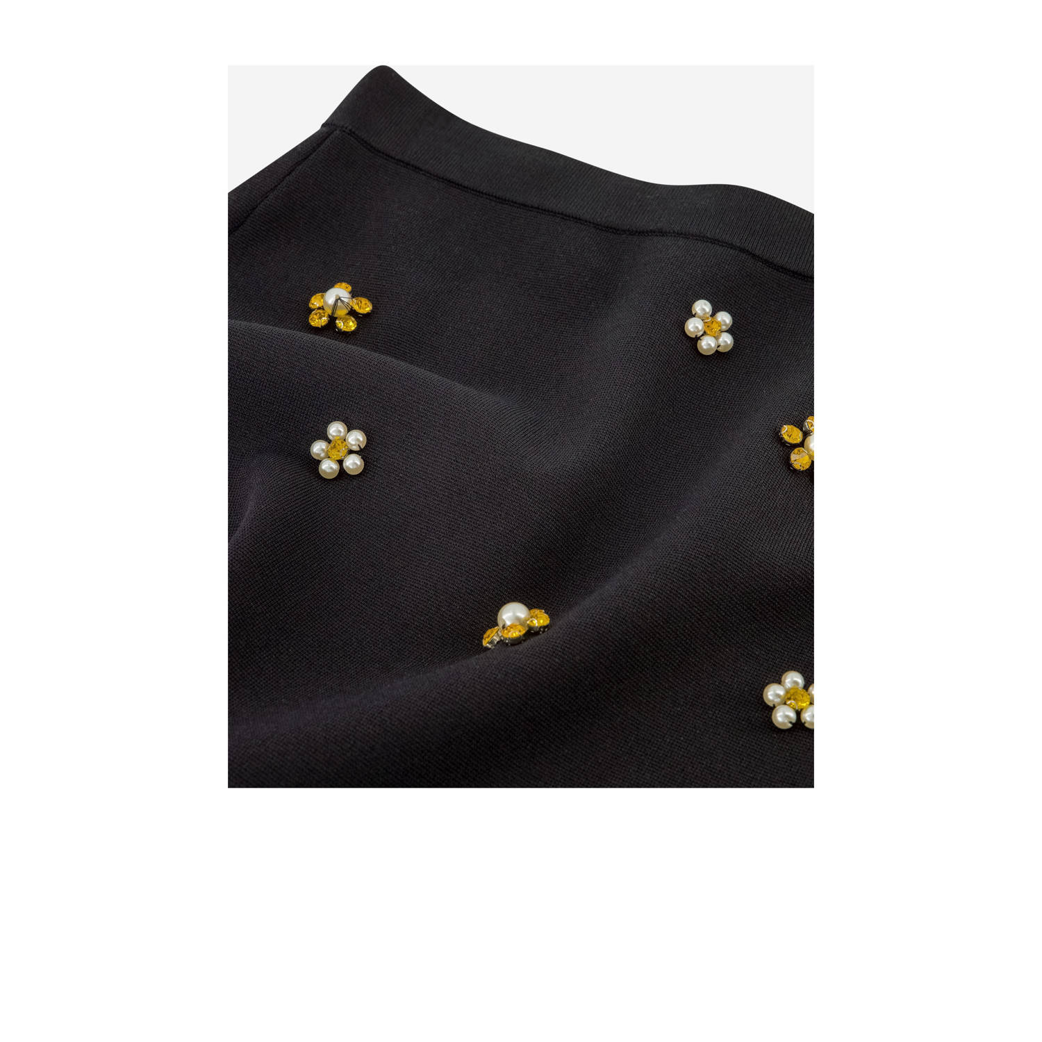 Deze rok van NIKKIE heeft een korte lengte en een ritssluiting. De rok is gemaakt van viscose en heeft parels en strass steentjes als details, wat zorgt voor een opvallende uitstraling.