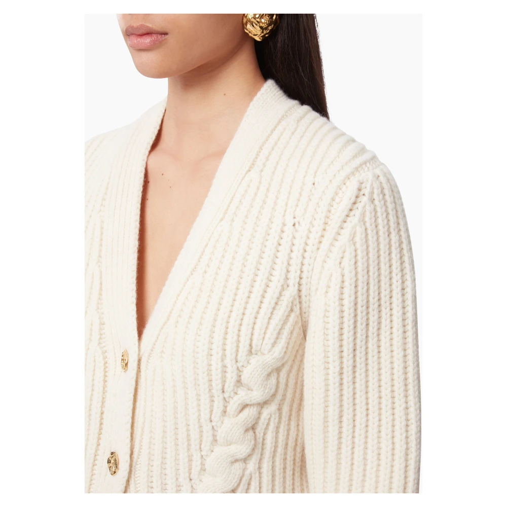 Upgrade je garderobe met deze stijlvolle V-hals gebreide cardigan in beige van Nina Ricci. Perfect voor de moderne vrouw.