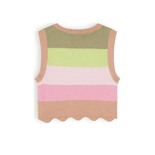 Deze spencer voor meisjes van NONO is gemaakt van katoen en is gestreept. Het mouwloze model heeft een ronde hals.details van deze trui: stijlnaam: Kosmic fijn gebreid