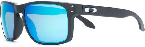 Holbrook zonnebril met vierkant montuur van Oakley uitgevoerd in plastic voorzien van vierkant montuur, gespiegelde glazen, logo op de tempel en gestrekte armen met gebogen uiteinden. Het artikel is inclusief beschermende hoes.
