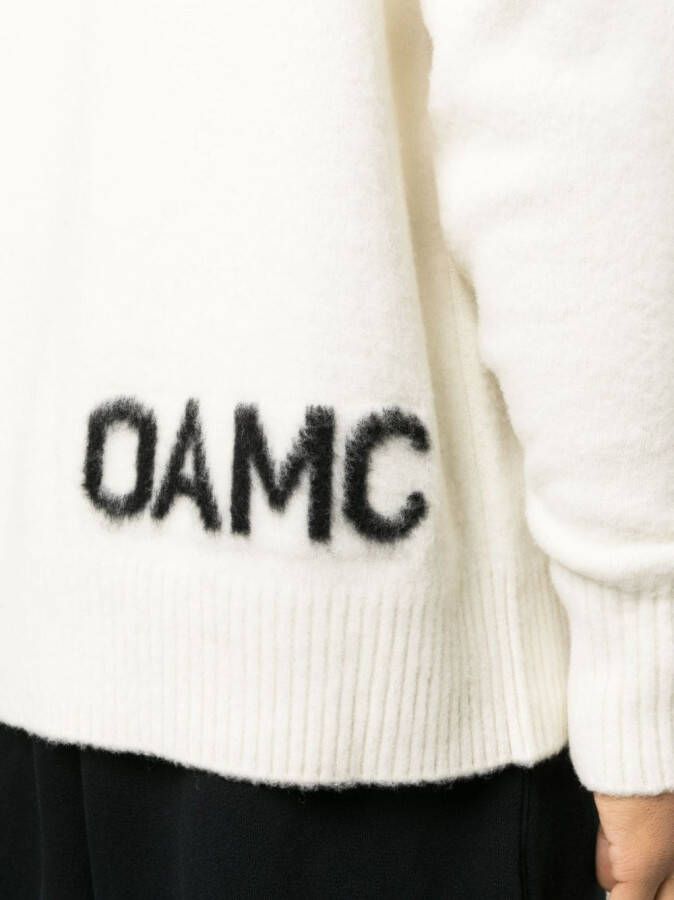 Wol, gebreid materiaal, intarsia logo, ribgebreide afwerking, ronde hals, lange mouwen en rechte zoom.
