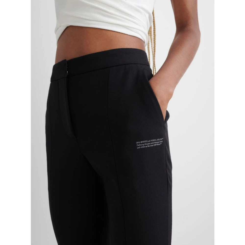 Upgrade je stijl met deze zwarte high-waisted broek van Off-White. Met een hoge taille, logo aan de voorkant, verborgen sluiting, zij- en achterzakken, persplooi en enkelventilatie zijn deze wijde broeken een must-have voor de modebewuste vrouw.