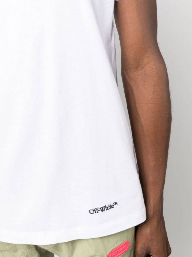 Wit, katoen, geborduurd logo op de voorkant, ronde hals, korte mouwen en rechte zoom.
