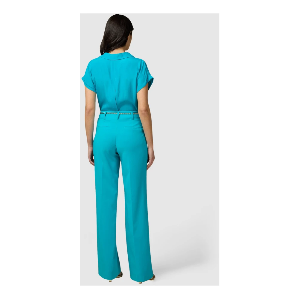 Upgrade je garderobe met deze Oltre straight broek voor vrouwen. Gemaakt van technisch stretchmateriaal, hebben deze broeken een flare snit, beenplooien, een Army-stijl knoopsluiting en verborgen achterzakken. Compleet met een smalle riem in de vorm van een gevlochten metalen ketting. Samenstelling: 89% polyester, 11% elastaan. Wasvoorschriften: Machinewas op 40 graden, niet in de droger, niet bleken, hangend drogen, chemisch reinigen met P, strijken op maximaal 110C.