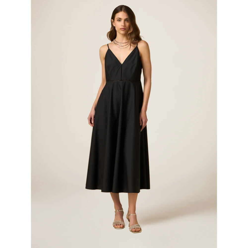 Upgrade je garderobe met deze Oltre midi-jurk, gemaakt van een koele katoenmix popeline. Met een V-hals, gevoerde bovenkant en delicate verstelbare bandjes is deze jurk perfect voor dag- en avondkleding. Het ajour see-through detail voegt een vleugje elegantie toe. Samenstelling: 64% katoen, 32% polyamide, 4% elastaan. Wasvoorschriften: Machinewas op 30 graden, niet in de droger, niet bleken, chemisch reinigen, strijken op max. 110C.