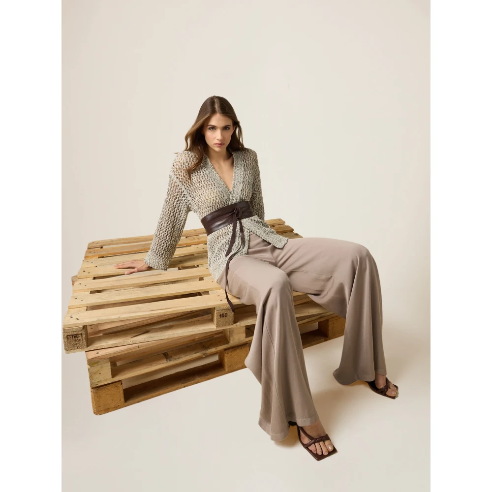 Upgrade je stijl met deze wijde broek van Oltre. Gemaakt in Itali, hebben deze broeken een palazzo beenpasvorm en een elastische taille aan de achterkant voor een comfortabele pasvorm. Gemaakt van een zacht en vloeiend Tencel-mengweefsel, zijn deze broeken perfect voor de modebewuste vrouw. Samenstelling: 90% viscose, 8% lyocell, 2% vlas. Wasvoorschriften: Handwas, niet in de droger, niet bleken, chemisch reinigen met milde chemicalin, strijken op maximaal 110C.