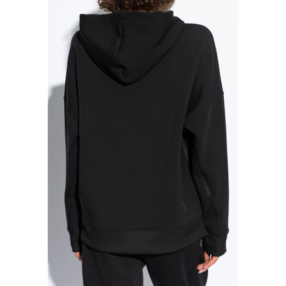 Deze Move Hoodie voor dames van On Running is klaar voor een warming-up en een cool-down. Deze losvallende trui in een klassieke zwarte kleur is gemaakt van een stretchy gerecyclede polyestermix voor langdurig comfort. Het beschikt over een steekzak aan de voorkant voor je trainingsbenodigdheden, elleboognaden om de structuur te behouden en een trekkoord met veterbescherming om ze op hun plaats te houden. Afgewerkt met een ritssluiting aan de zijkant en een tonale On Running-branding. Mag in de wasmachine. | Ons model draagt maat small.. Material: 82% gerecycled polyester/13% lyocell/5% elastaan