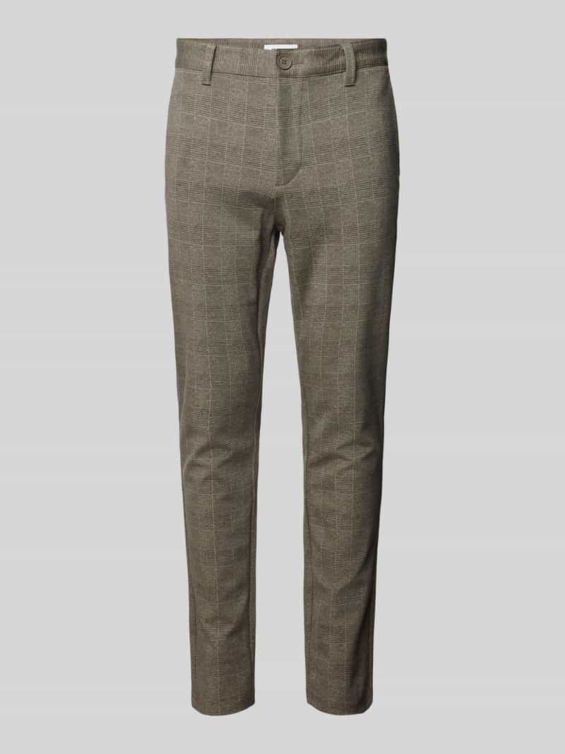 Herenchino van Only & Sons. Recht model. Franse steekzakken. Model 'MARK'. Knoop- en ritssluiting. Achterzakken. Bandwijdte bij maat 32/32: 45 cm. Binnenbeenlengte bij maat 32/32: 79 cm