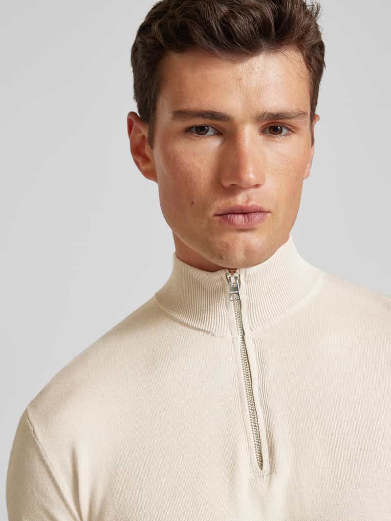 Gebreide herenpullover van Only & Sons. Viscosemix. Regular fit. Model 'WYLER'. Opstaande kraag. Ritssluiting. Ruglengte bij maat M: 68 cm. Mouwlengte bij maat M: 73 cm