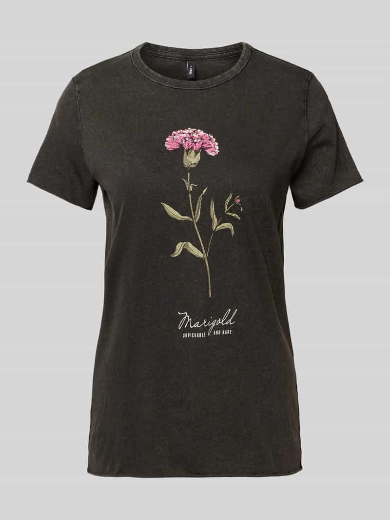 T-shirt van Only voor dames. Model 'Lucy Life'. Look: Used look. Pasvorm: Regular fit . Applicatie: Motiefprint. Hals: ronde hals. Mouwvorm: korte mouwen. Mouwboord: Rolzoom. Rompzoom: Rolzoom. Materiaal: puur katoen. Ruglengte bij maat S: 62 cm. Borstomvang bij maat S: 45 cm