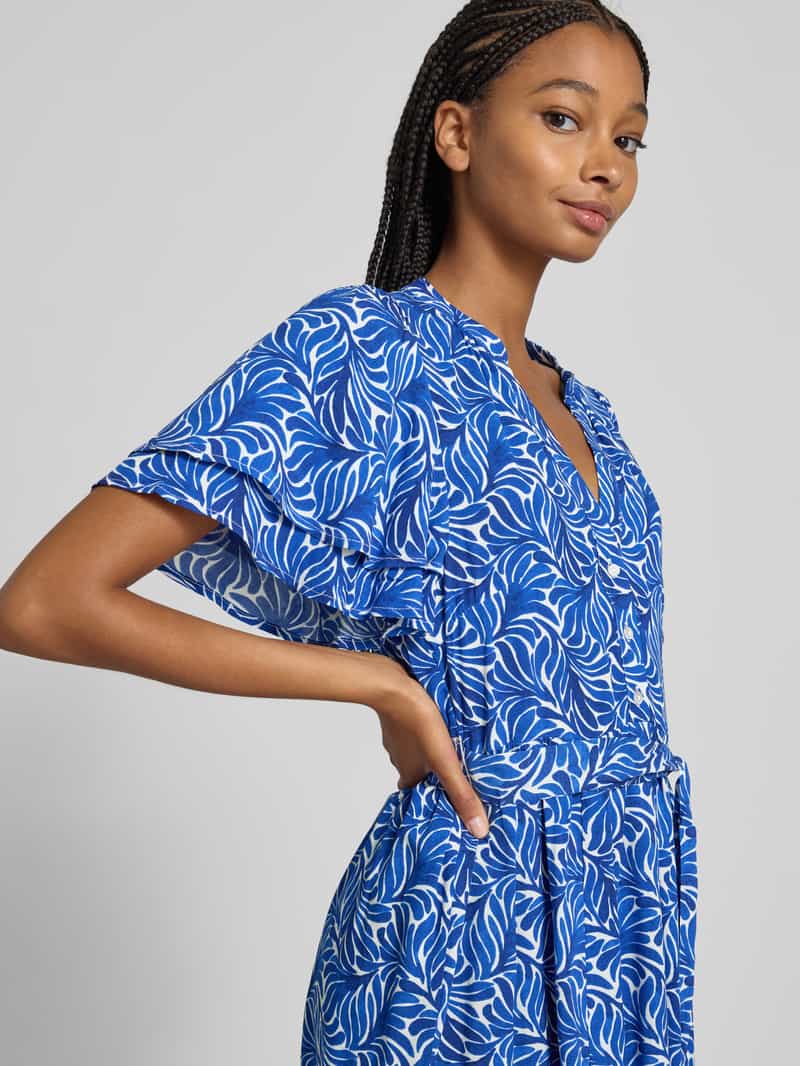 Vrijetijdsjurk van Only. Model 'Nova Life'. Look: All-over motief. Pasvorm: getailleerd. Lengte: Mini . Hals: V-hals. Sluiting: korte knoopsluiting, taillecentuur om vast te knopen. Mouwvorm: korte mouwen, volant. Gelegenheid: Vrije tijd. Materiaal: pure viscose. Totale lengte bij maat S: 88, 5 cm. Borstomvang bij maat S: 43 cm. Schouderbreedte bij maat S: 35 cm