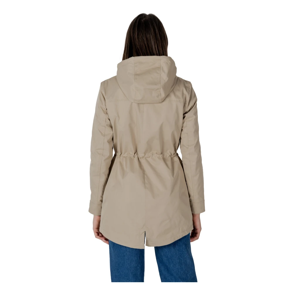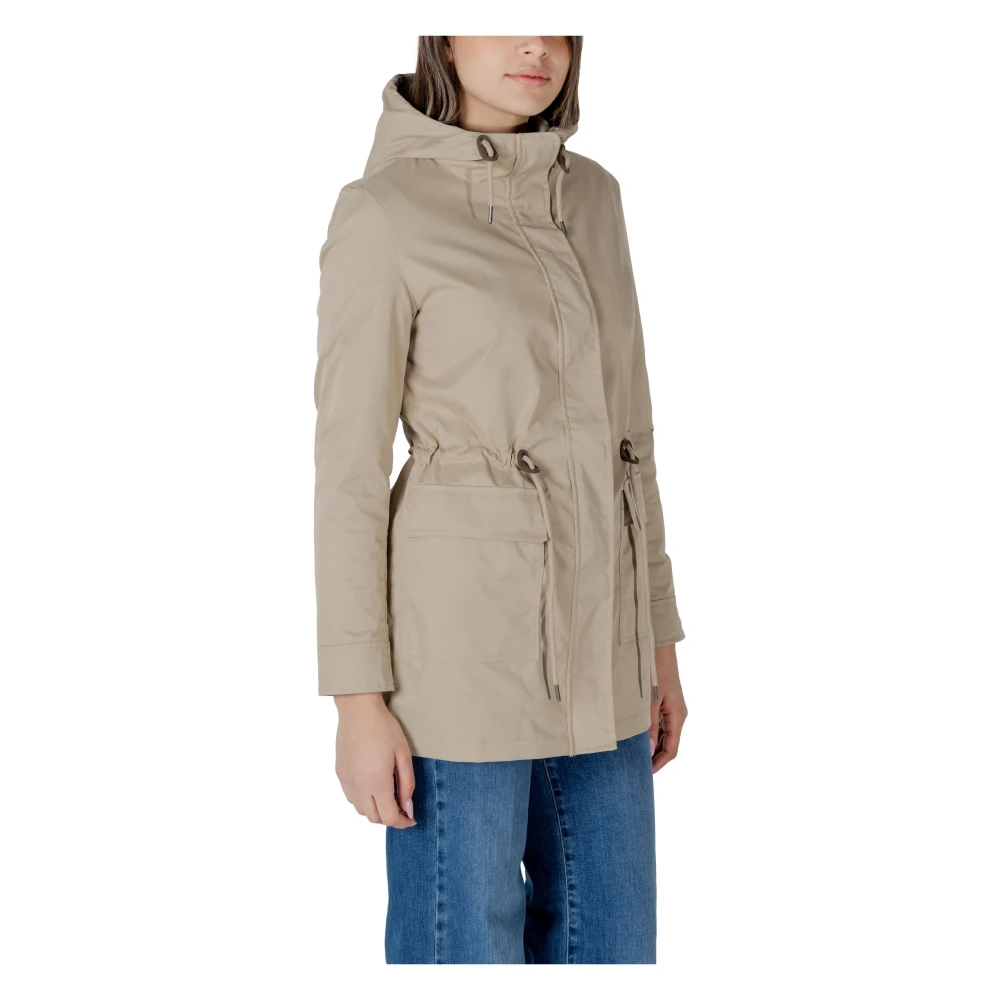 Damesparka van Only. Model 'Louise'. Look: effen. Pasvorm: Shaped fit . Kraagmodel: Opstaande kraag, capuchon met tunnelkoord. Sluiting: blinde ritssluiting met drukknoopsluiting. Applicatie: Tunnelkoord bij de taille. Mouwvorm: lange mouwen. Rompzoom: licht afgerond met split aan de achterkant. Zakken: opgestikte klepzakken. Materiaal: Polyester. Totale lengte bij maat S: 80 cm. Borstomvang bij maat S: 50 cm. Schouderbreedte bij maat S: 42 cm. Mouwlengte bij maat S: 59 cm