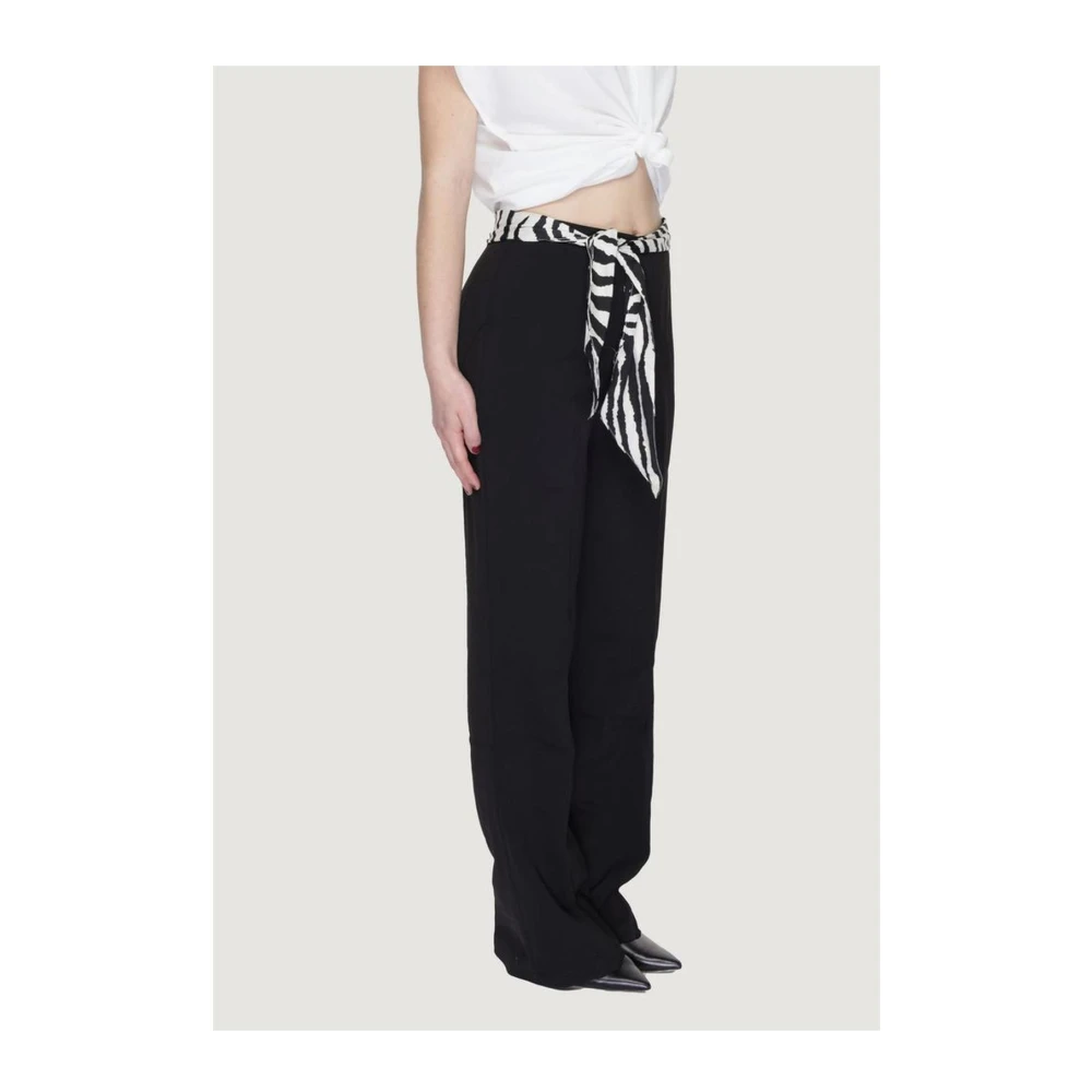 Upgrade je garderobe met deze Only zwarte uitlopende broek met bijpassende riem met zwart-witte streepdetails. Het elegante en moderne ontwerp loopt licht uit vanaf de knie tot aan de zoom, typerend voor de uitlopende stijl. Sluiting met zijrits. Het model is 170 cm lang en draagt maat 40. Aanbevolen verzorgingsinstructies zijn wassen op 30 graden en strijken op gemiddelde hitte. Lente/zomer collectie zwarte uitlopende broek voor vrouwen met riem, zwart-witte strepen, zijrits.