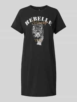 Vrijetijdsjurk van Only. Model 'Lucy Life'. Look: Used look. Pasvorm: Regular fit. Lengte: Mini . Hals: ronde hals. Applicatie: Motiefprint. Mouwvorm: korte mouwen. Mouwboord: Rolzoom. Zoom: Rolzoom. Gelegenheid: Vrije tijd. Materiaal: puur katoen. Totale lengte bij maat S: 85 cm. Borstomvang bij maat S: 51 cm. Schouderbreedte bij maat S: 38 cm