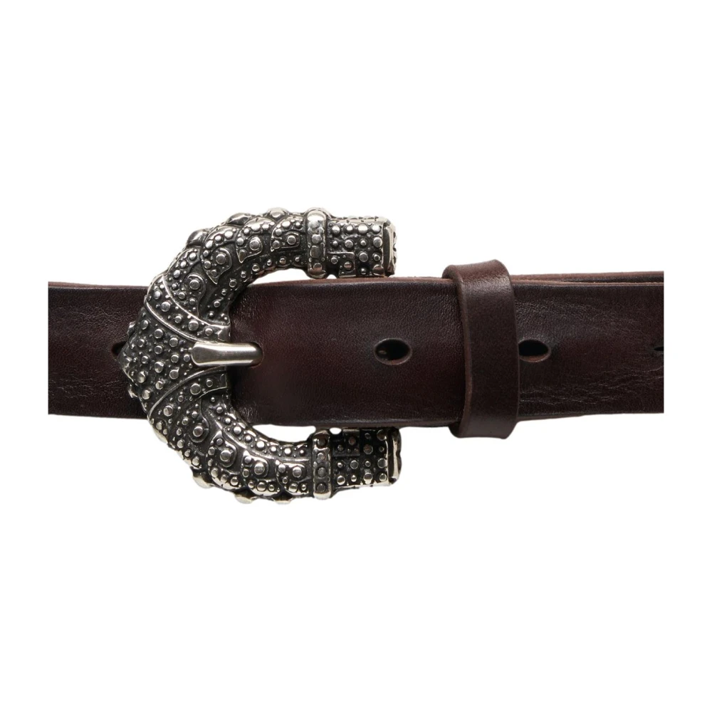 Verhoog je stijl met deze prachtige bruine Western riem van Orciani, ontworpen voor vrouwen. Met prachtige zilverkleurige metalen details en stud-accenten, is deze riem gemaakt van 100% gelooid leer voor duurzaamheid en elegantie. Perfect voor elke outfit, maak vandaag nog een gedurfd statement! Niet wassen.