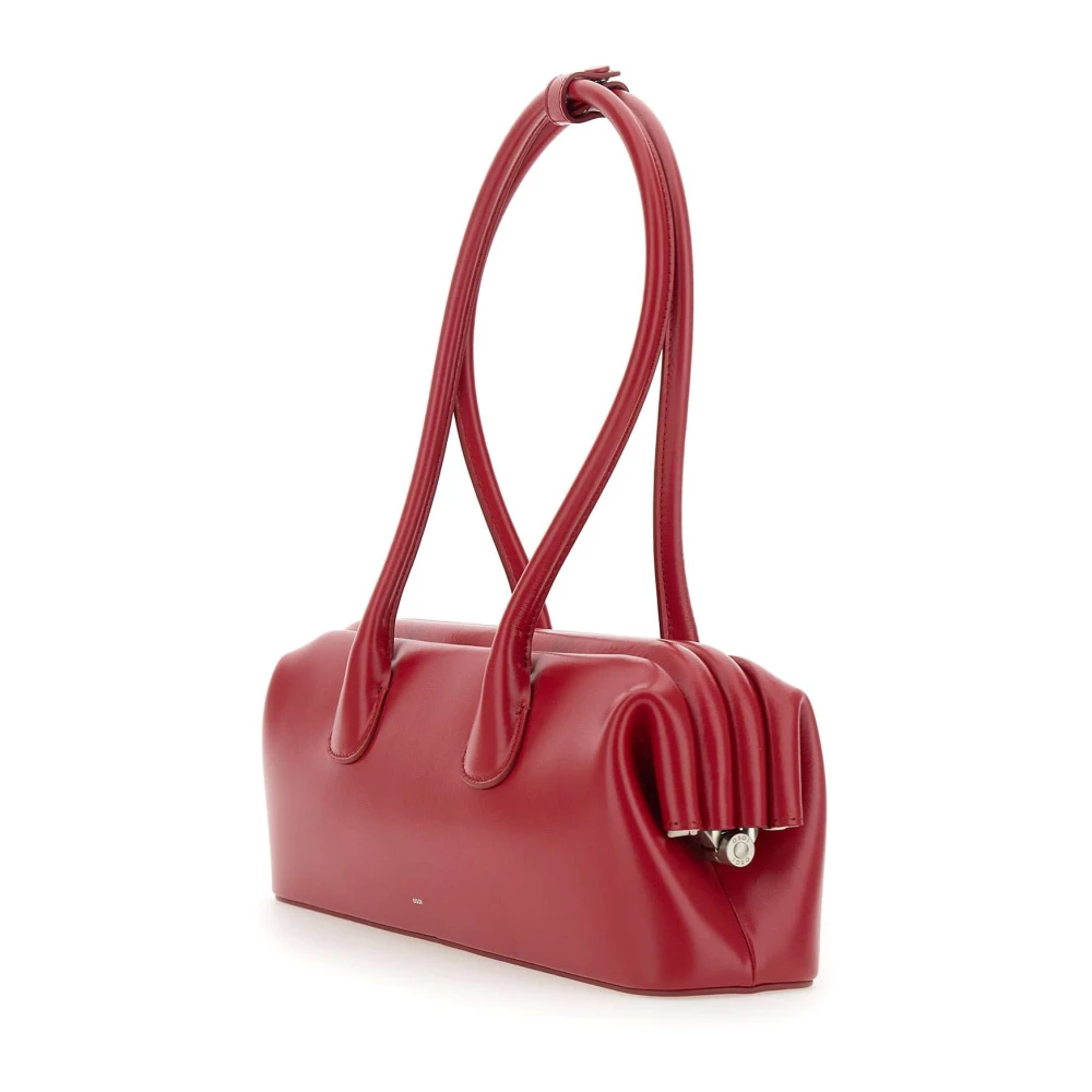 Upgrade je stijl met de Osoi 'Boat wide' leren schoudertas in helder rood. Dit minimalistische ontwerp heeft dubbele bovenhandvatten, een enkel compartiment met drukknoopsluiting, stoffen interieur en binnenzak. Afgewerkt met een zilveren galvanisch logo en contrasterend mini-logo onderaan. Inclusief stofzak. Afmetingen: 13, 5 cm hoogte, 35 cm lengte, 8 cm diepte.