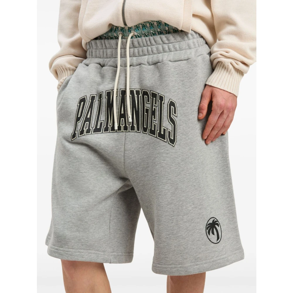 Palm Angels heren lange shorts in lichtgrijs met trekkoord in de taille, steekzakken aan de zijkanten en logo print versiering.