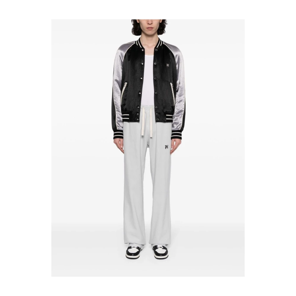 Upgrade je stijl met deze Palm Angels wijde broek in lichtgrijs. Gemaakt van een katoen-lyocell mix, met een geborduurd logo op de voorkant, een elastische trekkoord tailleband, twee achterzakken en een recht been ontwerp. Perfect voor de moderne man.