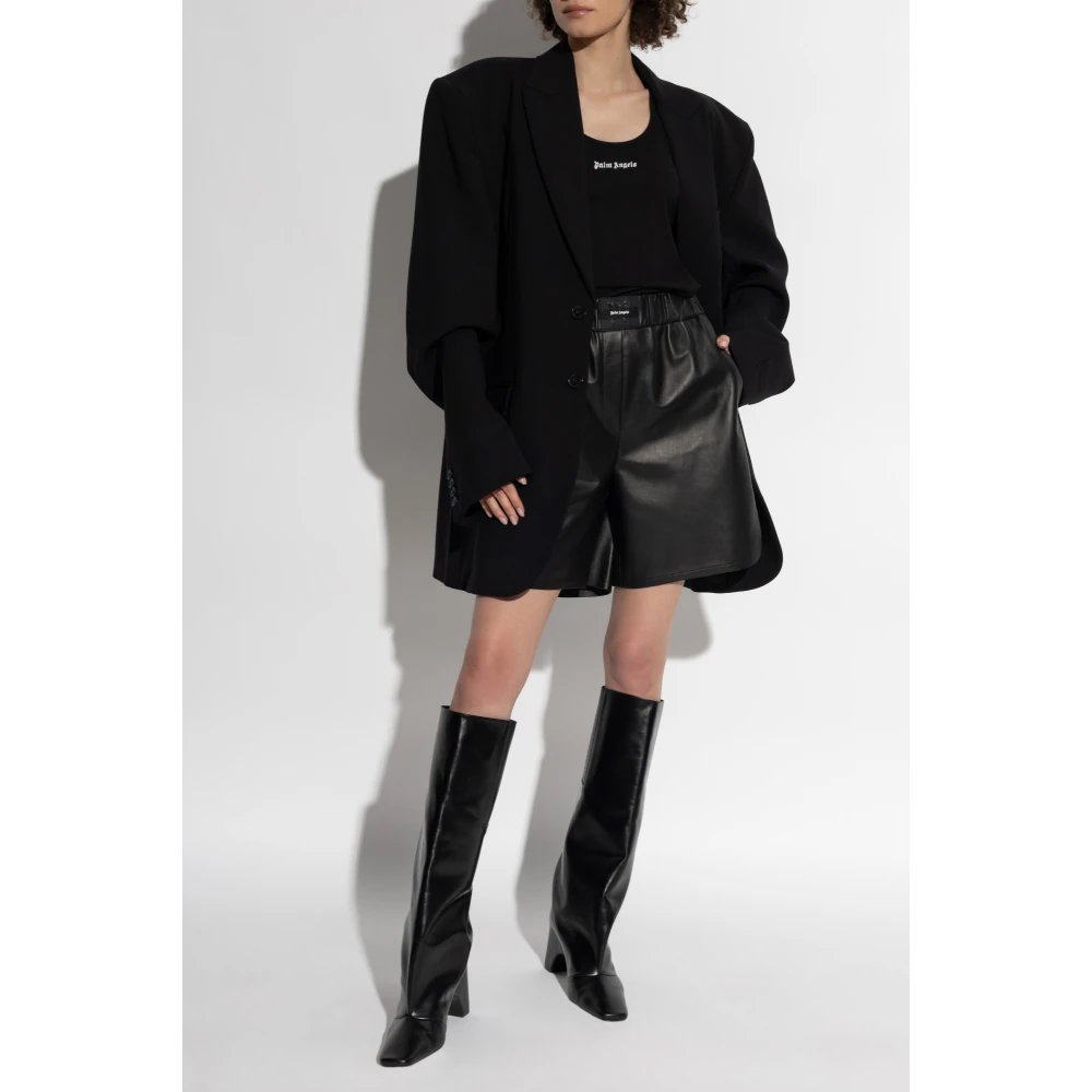 Verrijk je stijl met deze mouwloze top van Palm Angels voor vrouwen. Gemaakt van een zwarte katoenmix, heeft het een geribbelde gebreide ontwerp met een geborduurd logo op de borst. De scoop hals, racerback en rechte zoom voegen een vleugje sportieve elegantie toe aan je outfit.