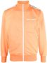 Oranje, logoprint op de borst, zijstreep, hoge hals, ritssluiting aan de voorkant, lange mouwen en rechte zoom.