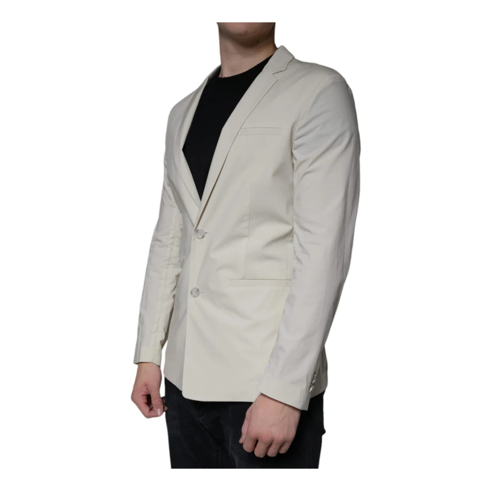Upgrade je stijl met deze Paolo Pecora beige single-breasted blazer. Gemaakt in Itali van katoen, deze slim fit blazer heeft een sluiting met twee knopen, binnenzakken en een enkele open split aan de achterkant. Perfect voor de moderne man. Maat op label: It 46 | S.