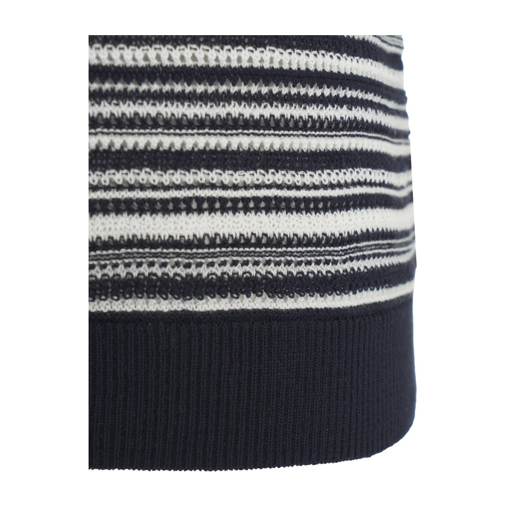 Upgrade je garderobe met deze stijlvolle gebreide T-shirt in het blauw. Met een geribbelde kraag en manchetten is dit korte mouwstuk perfect voor informele uitstapjes