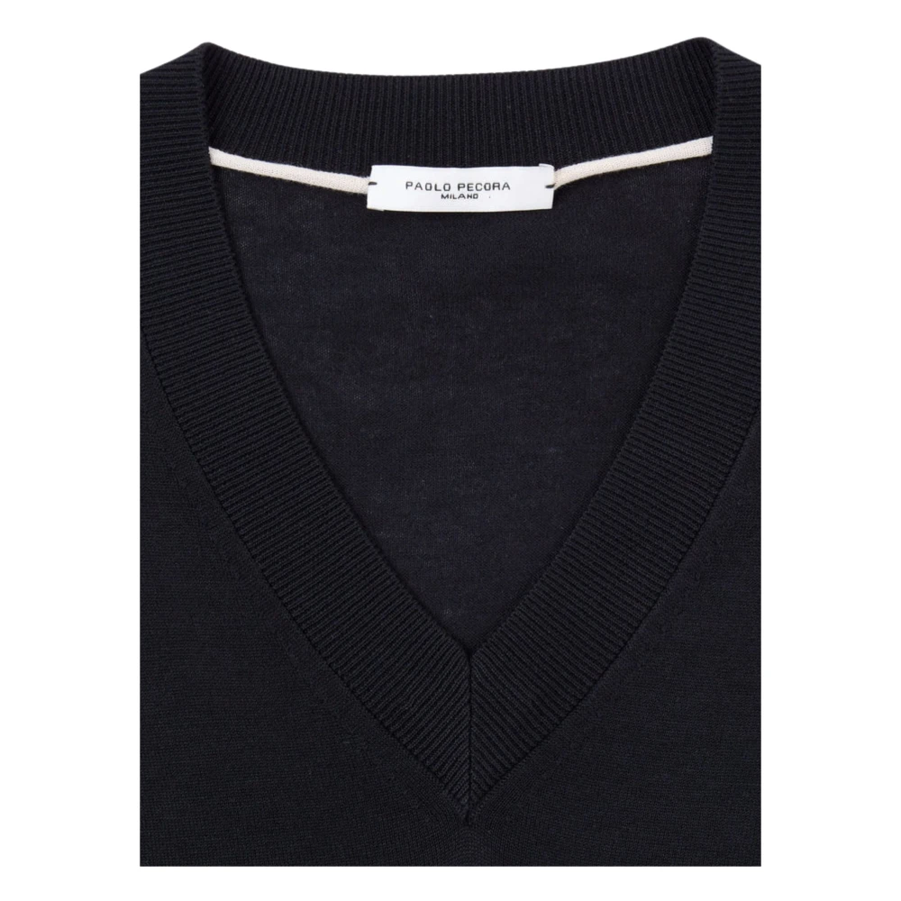 Paolo Pecora tekent deze V-hals trui met lange mouwen in zuiver extrafijne katoen, verkrijgbaar in elegant zwart. Met een geborstelde afwerking voor een zacht en comfortabel gevoel, en een perfecte pasvorm. Het essentile element voor een verfijnde en veelzijdige garderobe