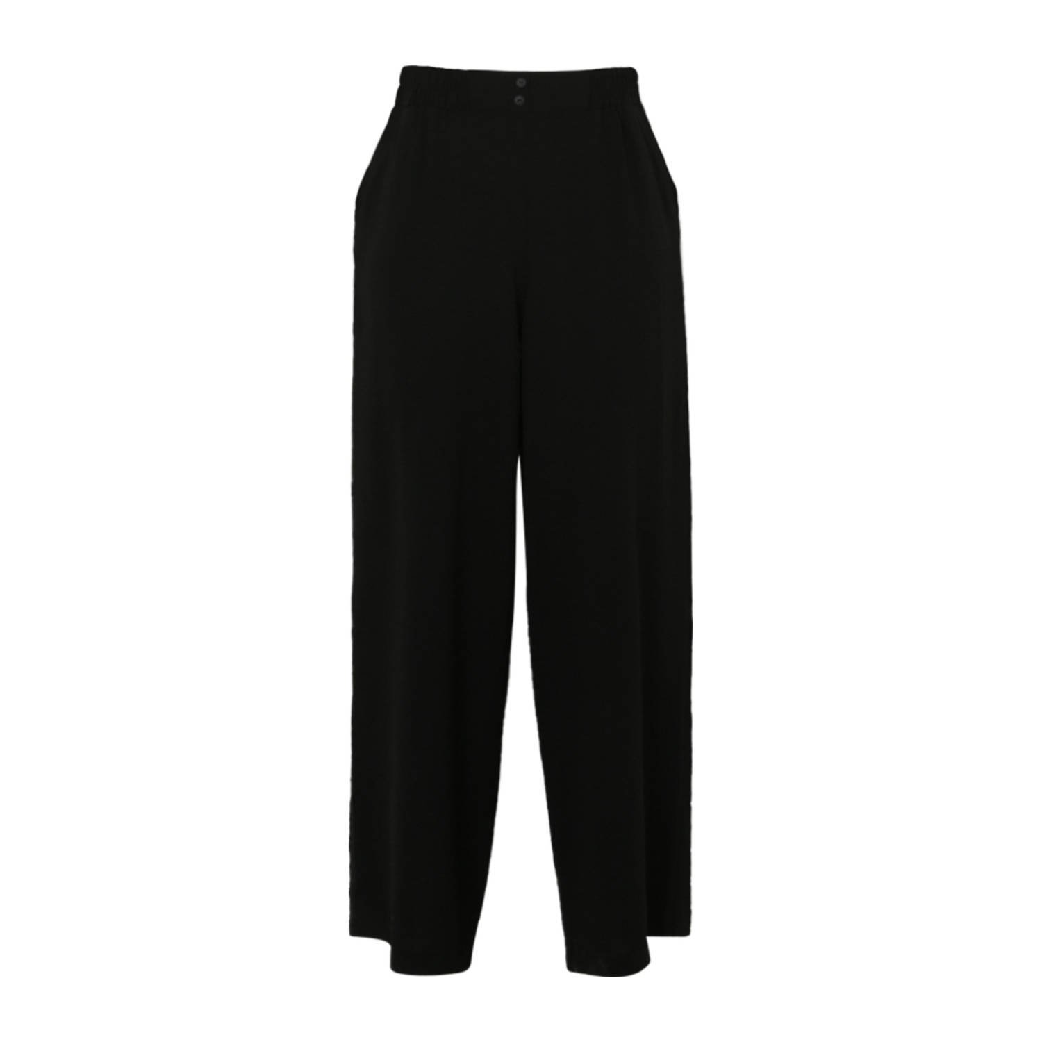 Deze damesbroek van Paprika heeft een wide leg pasvorm. Gemaakt van 100% polyester. De regular waist en knoopsluiting zorgen voor een comfortabele pasvorm. Voorzien van zijzakken in een stijlvolle zwarte kleur.
