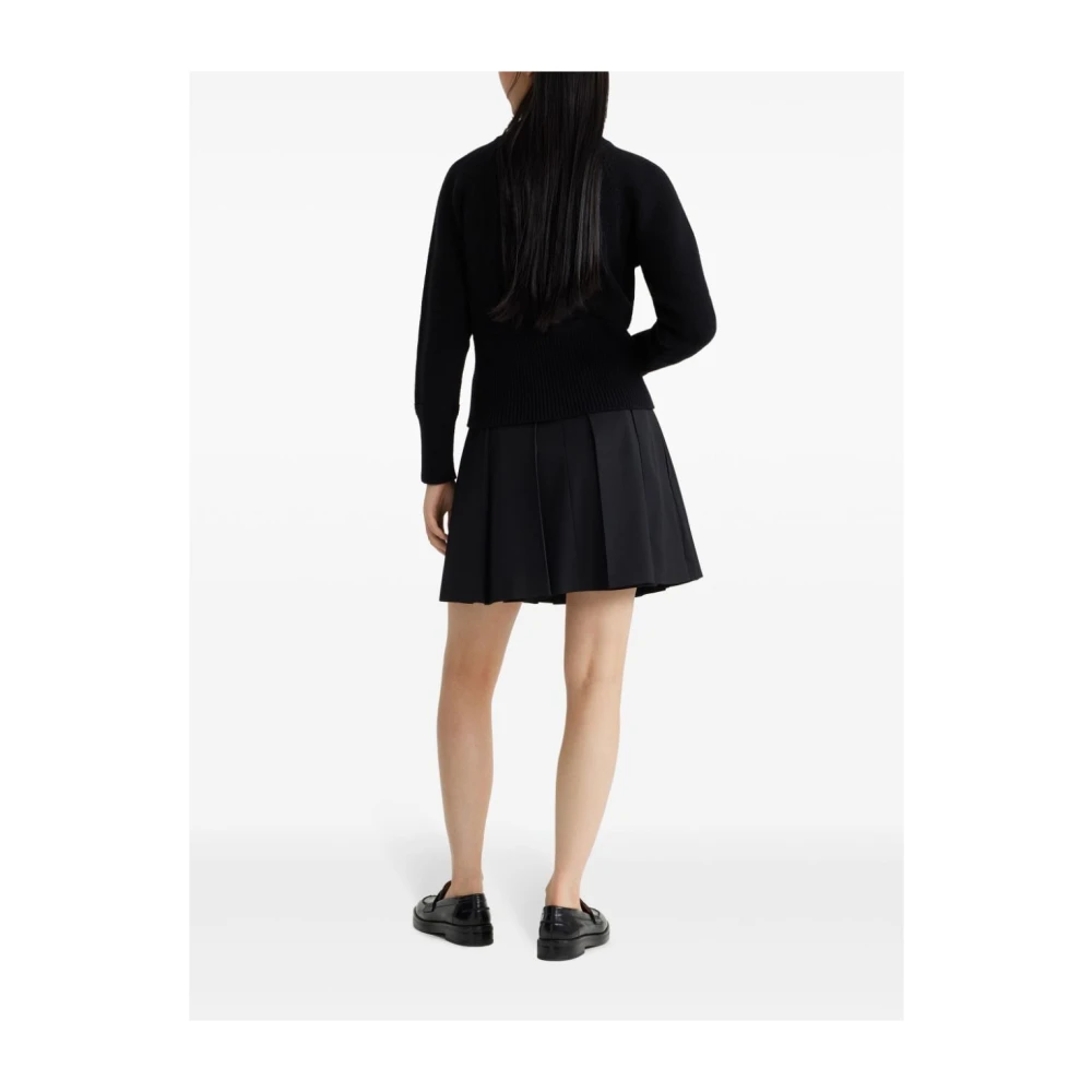 Patou - Geplooide Minirok - 100% Maagdelijke Wol - Zwart - Riemlussen - Voorsluiting - Vrouwen