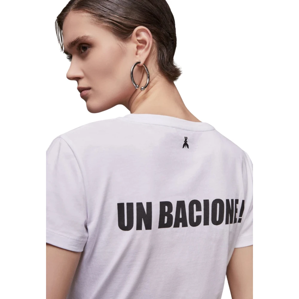 Casual stijl en trendy details voor deze katoenen T-shirt van Patrizia Pepe. Val op met de gedurfde en leuke lipprint en slogan op de achterkant. Gemaakt van katoenen jersey met een slim fit, reguliere lengte, korte mouwen en een ronde halslijn.