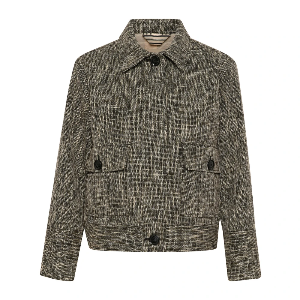 roze imitatiebont ontwerp drukknoopsluiting aan de voorkant opstaande kraag lange mouwen elastische manchetten twee ingenaaide zijzakken afgeronde zoom