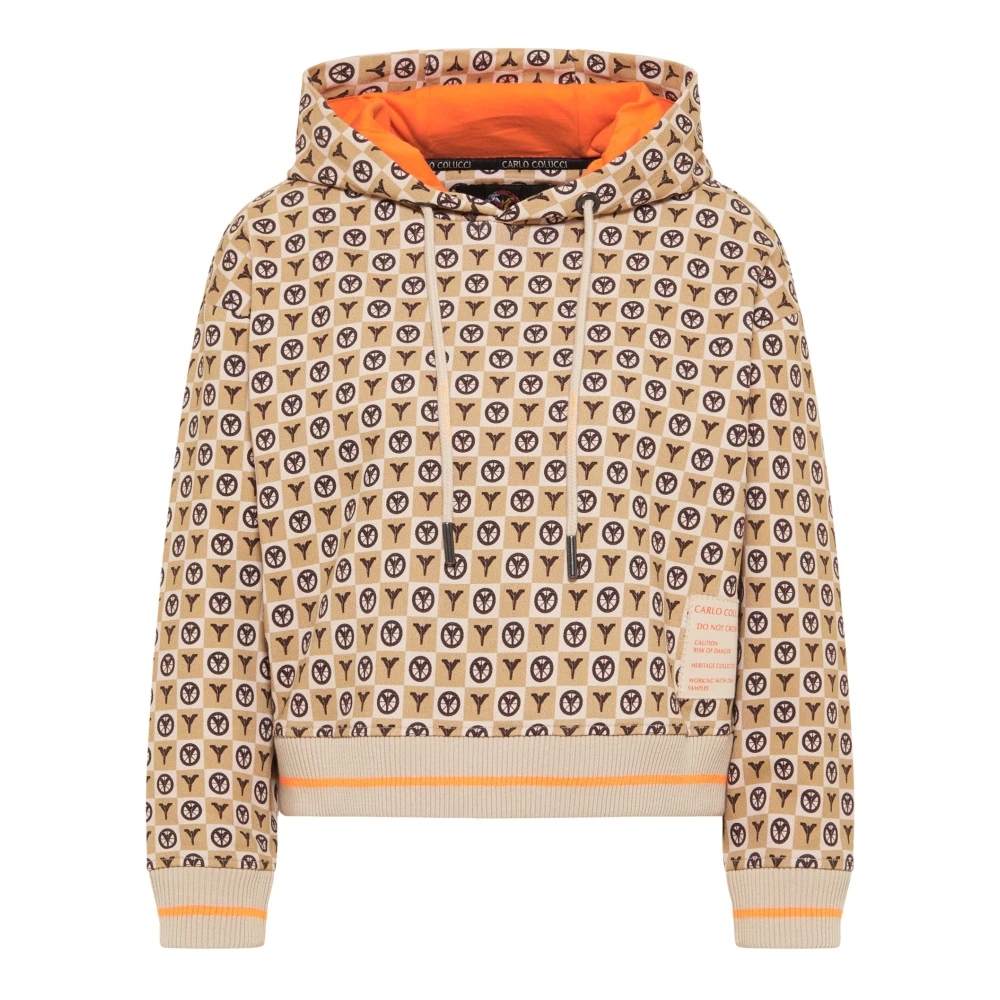 zwart merinowol gebreid capuchon met trekkoordsluiting twee opgestikte voorzakken geborduurd logo op de mouw lange mouwen geribbelde manchetten en zoom rechte zoom