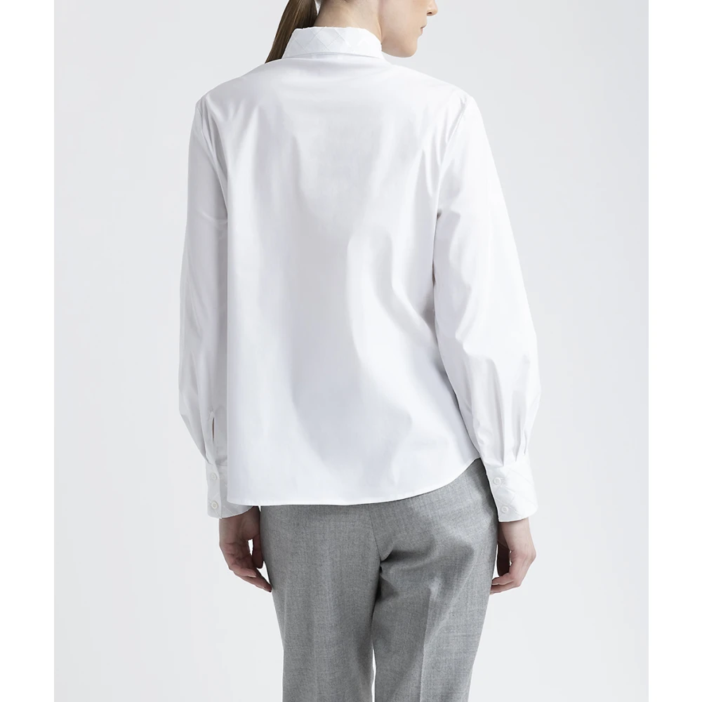 Lange mouwen shirt van zachte effen stretch katoenen popeline. De reguliere pasvorm en minimale verborgen knoopsluiting combineren met delicate micro-pailletten op de kraag en manchetten. Ideaal om te dragen in combinatie met elke broek voor een verfijnde en karaktervolle uitstraling.